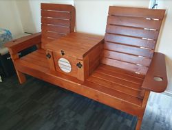 Just thought I'd pass along the results of your plans for the double chair. I built it over the course of a few weeks as a donation to the local volunteer fire department picnic raffle. It went for $500 in the silent auction, the top selling item. Attached is a picture of it at the winner's home.