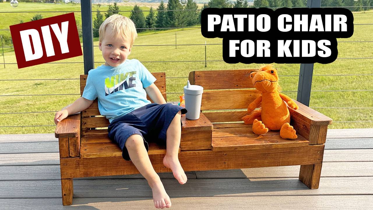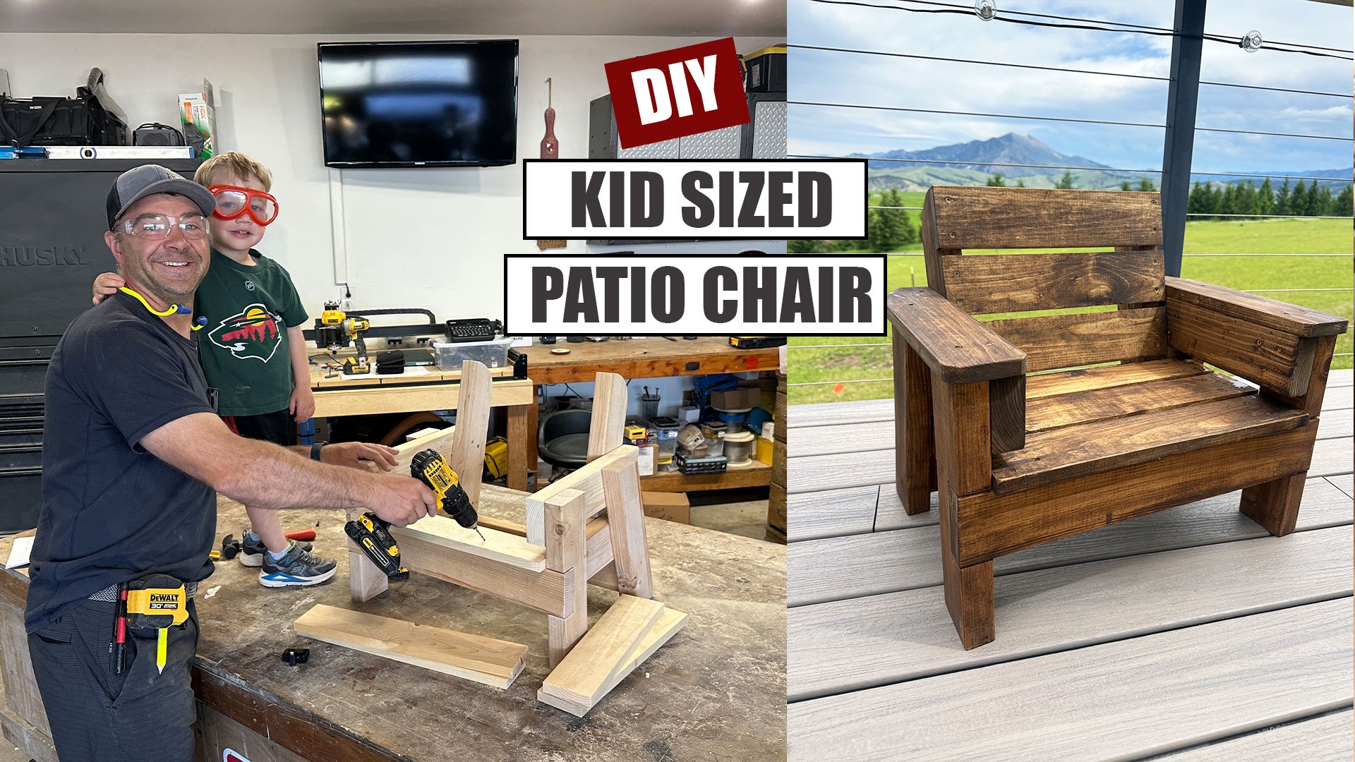 Plans to build a DIY Patio chair for kids! This mini version of the patio chair is perfect for your little one. They will love having their own chair just like the adults! I 22 Page PDF with detailed diagrams, cut list, and shopping list.